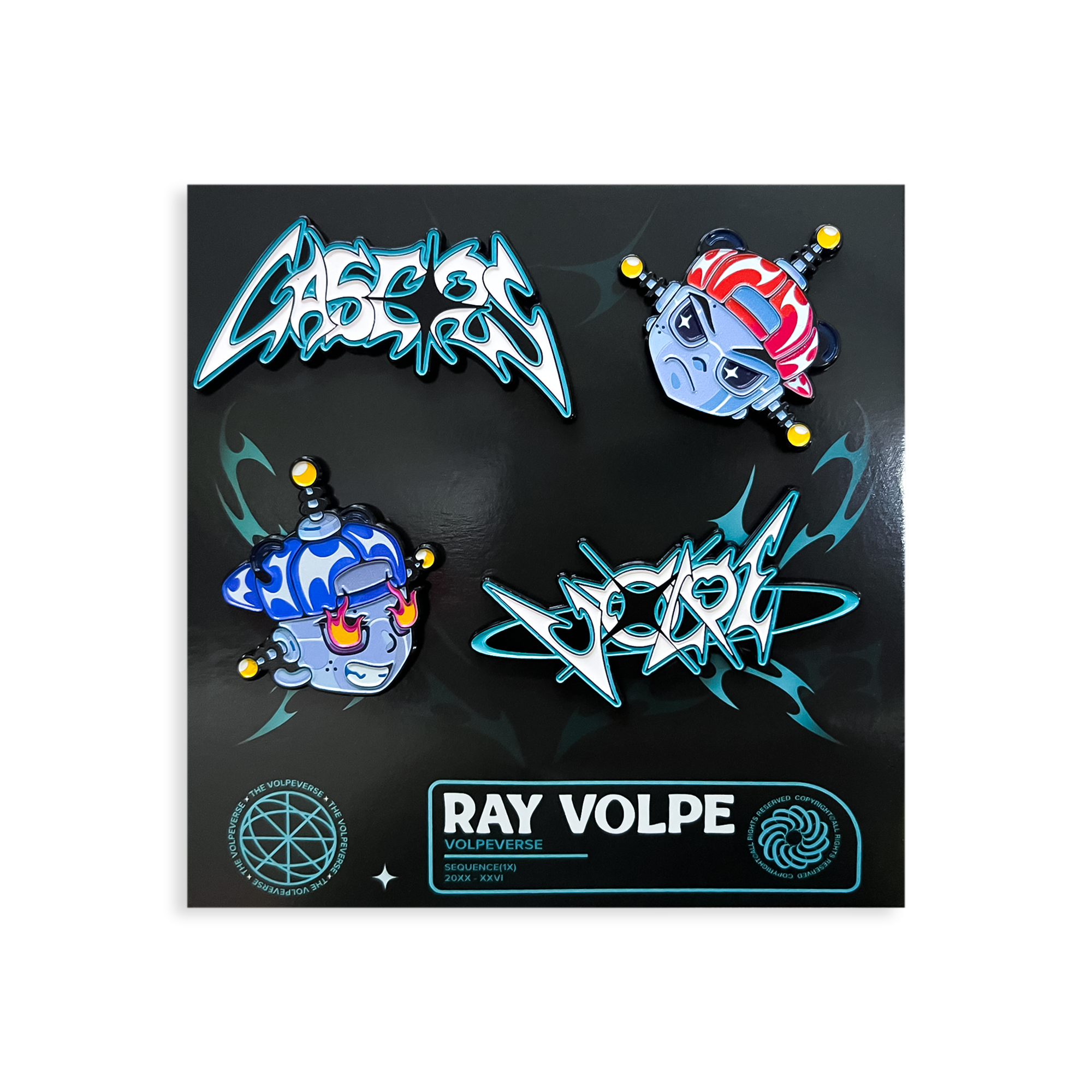 Ray Volpe - Laser Head Pin Pack includes 4 individual pins. Custom packaging.